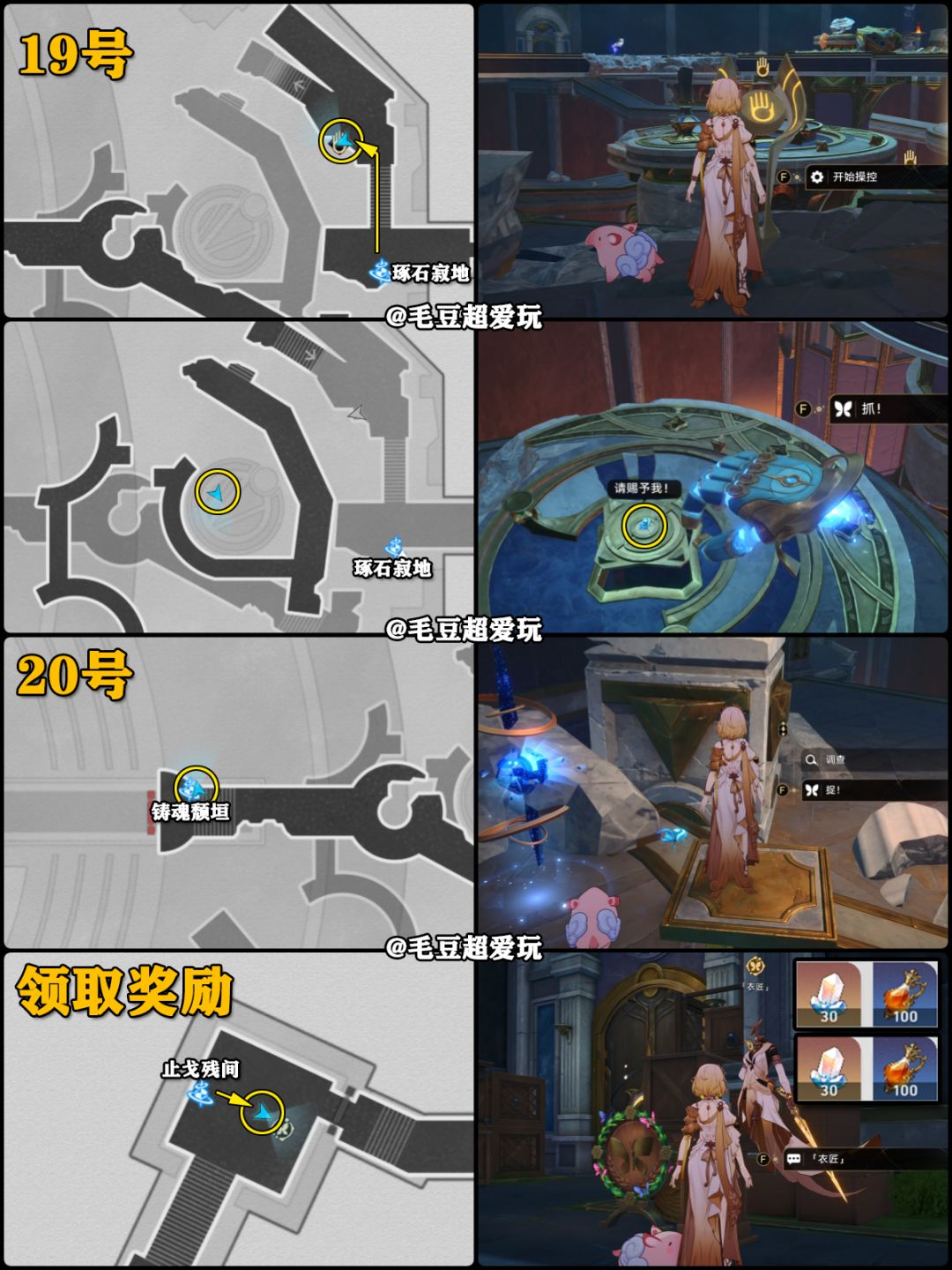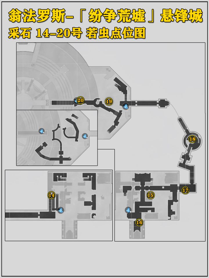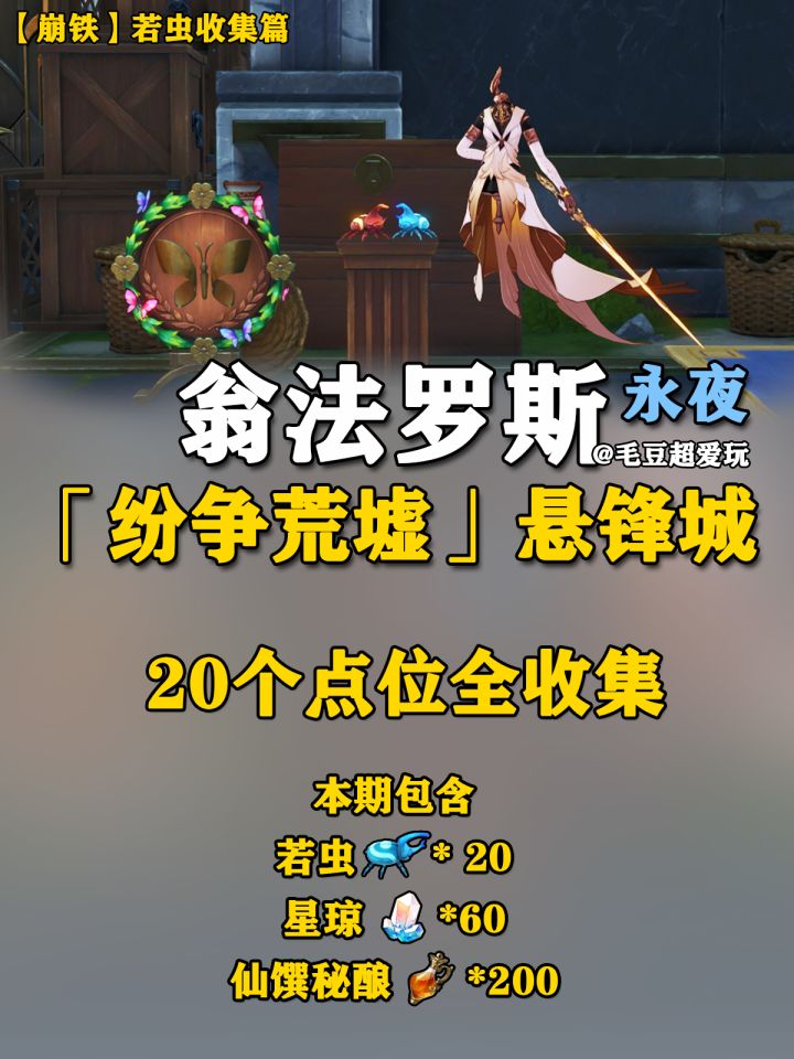 该地图20只若虫全部收集完成后,记得到<「纷争荒墟」的衣匠前哨站>领取奖励,共计60星琼、200仙馔秘酿。