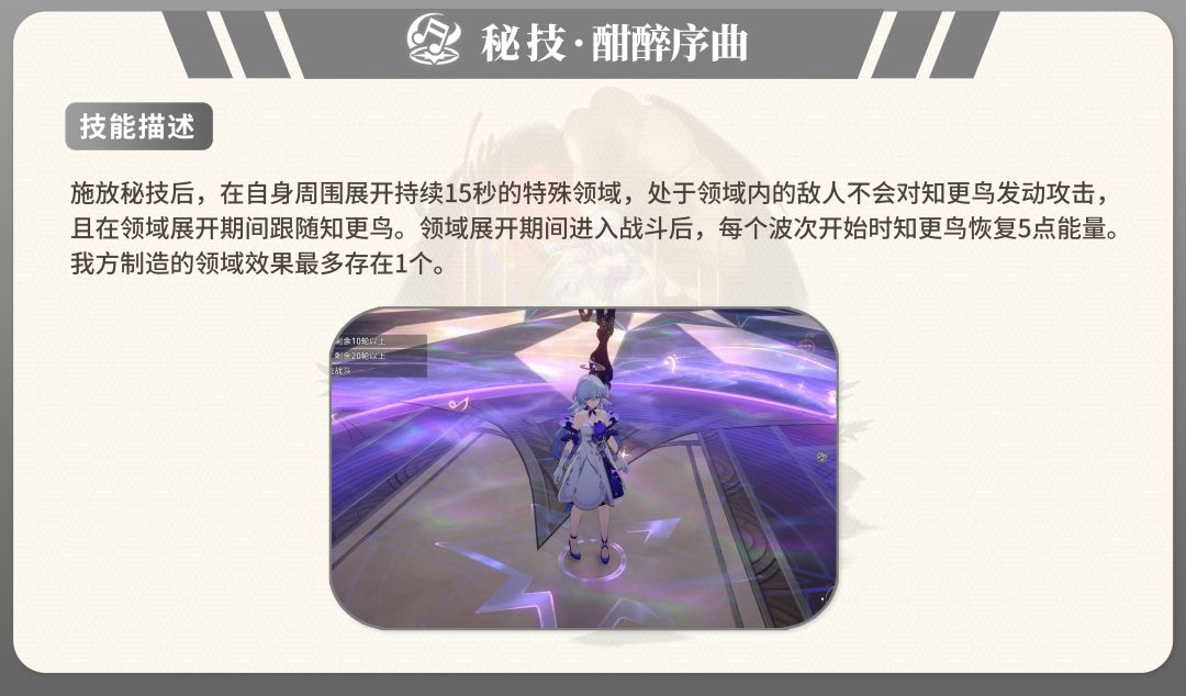 ③ 领域类秘技只能存在1个,例如知更鸟释放秘技后,真理再释放秘技就会顶替掉知更鸟的秘技。——如果队伍中有多个领域秘技,知更鸟的秘技优先级不高,优先使用其他角色的领域秘技。