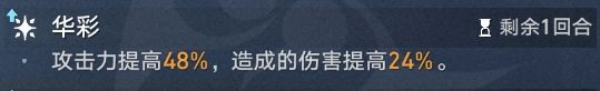 ③ 释放终结技后,【歌咏】转化为【华彩】,【华彩】首先会为知更鸟加攻,终结技转化也就是为全体加攻,其次是为全体增伤;虽然只持续1回合,不过知更鸟释放终结技后转化为90的固定慢速度,增益的覆盖率还是不错的。