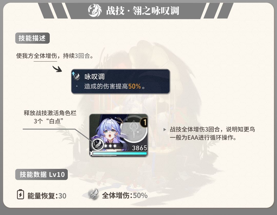 ① 能量恢复效率加成能使知更鸟在追击队伍的2动循环更加稳定。