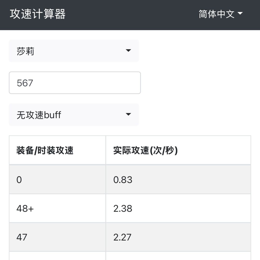 利用攻速计算器可以得知,567敏捷的莎莉需要48%的攻速才能达到🐏游攻速上限