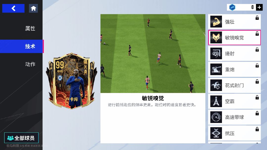 这张99巅峰卢卡库堪称 “锋线大杀器”,射门、抢点、对抗样样在行,助力球队摧城拔寨!他搭载了金色【强壮】技术和金色【敏锐嗅觉】技术,配合高达106的强壮以及103的进攻意识属性,能在禁区内轻松扛住对手防守,依靠出色的身体对抗能力和门前嗅觉,突出敌方重围并寻觅到绝佳的射门机会。同时,他还具备【搓射】【重炮】【花式射门】等多种射门技术,配合103的射门力量和103的射门属性,让他在射门时能够运用多种方式,无论是刁钻的搓射,还是势大力沉的重炮轰门,都能信手拈来。