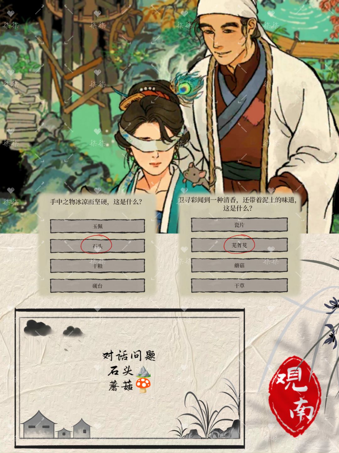 - 对话抉择:遇到对话问题【1-2】, “石头” 和 “蘑菇” 。如图二