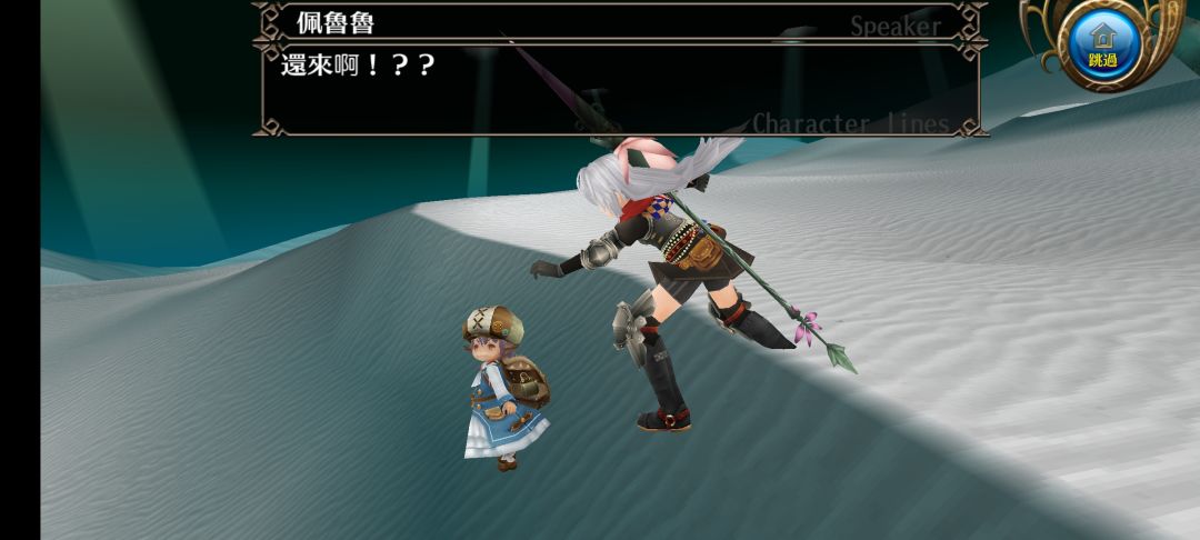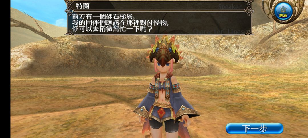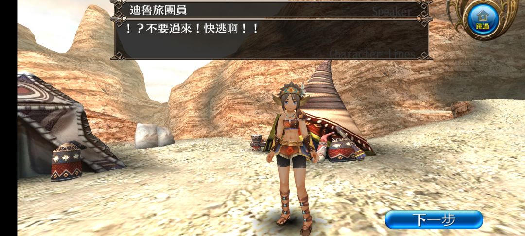 突然,小孩跑来,说明那位男性卡裘拉人遇到怪物并被抓走了。我们随即便向其逃离的方向追赶,在荒漠的最深处遇到了一位装备精良的人类。看到众人跑来,人影口中喊到我们过去击败的人形怪物原本也是这个世界的居民,并向我们发起突袭。