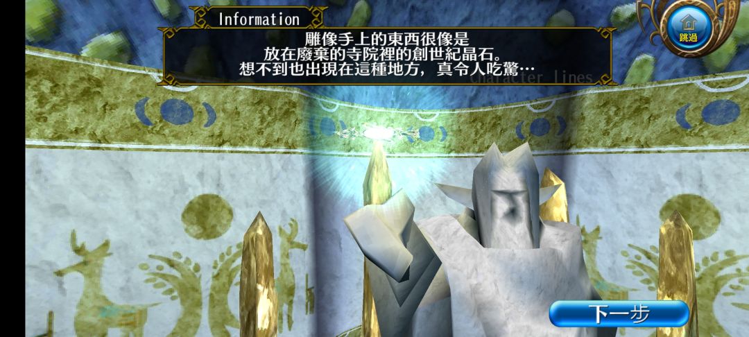 说罢,便引我们到深处的宫殿,佩鲁鲁一眼便认出了大殿中央的雕像是伊露娜12神之首 天神 阿鲁玛斯。随即发觉它手上有一块与 破旧的寺庙封印牛王一样闪烁的创世纪晶石。