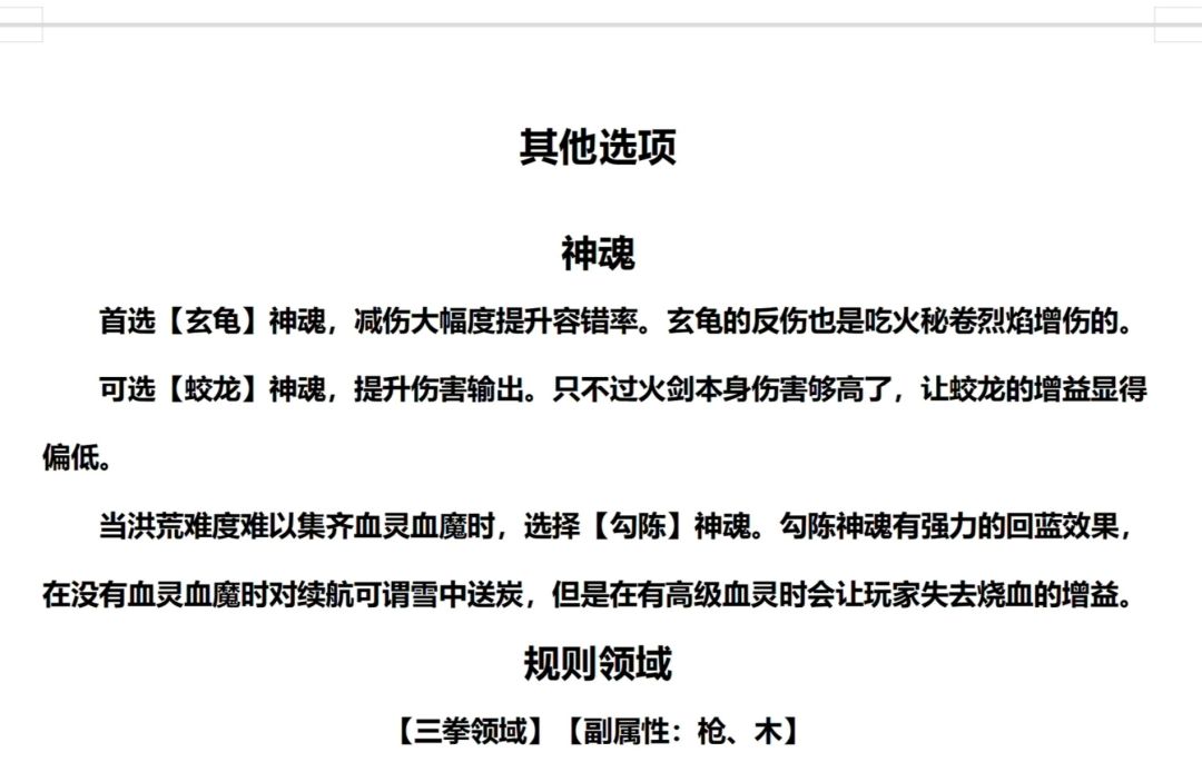 - 当在洪荒难度下难以集齐血灵血魔时,选择【勾陈】神魂。勾陈神魂具备强力的回蓝效果,在没有血灵血魔的情况下对续航帮助很大,不过在拥有高级血灵时,玩家会失去烧血带来的增益。