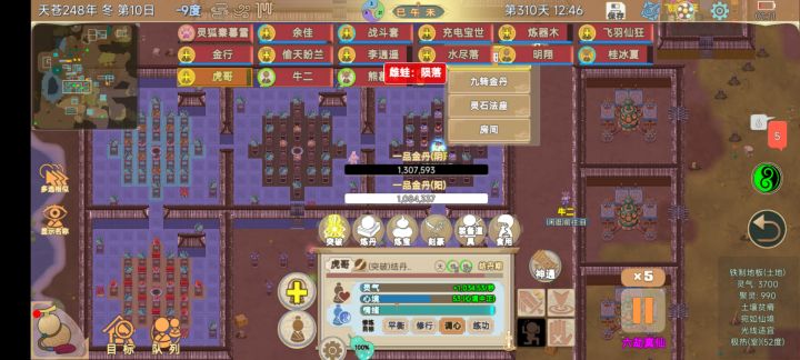 值得一提的是,我没有打龙凤,龙凤肉大部分都是妖祭来的,还有劫灰几乎打了一千个,万妖殿就是劫灰制造机,五维没炸,但心境差点炸了,基本上差不多负六七十,吃神舍利+洞神+天通洞神+清心+修炼堂和一些能学的适合纯阳心境功法,勉强提上来了(心境一开始是126,最后稳定53),结丹花了近一个季度(搞错时间了,正常纯阳是春秋10.11.12,但我结的是百万金丹,应该春秋1日开始,最后28日左右结束。我是11日左右开始,冬11日左右结束,最后季节减号拉满了…)。最后也是成功出了双百万金丹(灵气浓度不知道为啥只能稳定3k多,来了3次灵气潮汐,但最高也就3700多…)