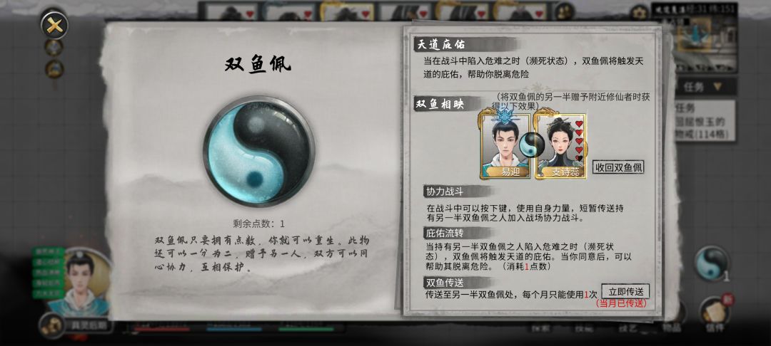 详解:正常打是绝对不可能打过的,所以我们需要摇人,摇人最强神器双鱼佩,冷却时间三个月,加攻神器噬魂剑,冷却时间三个月,很巧不是吗?理清思路后我们的目标就变成了找一个登仙道侣,并且增加自己的生存手段。