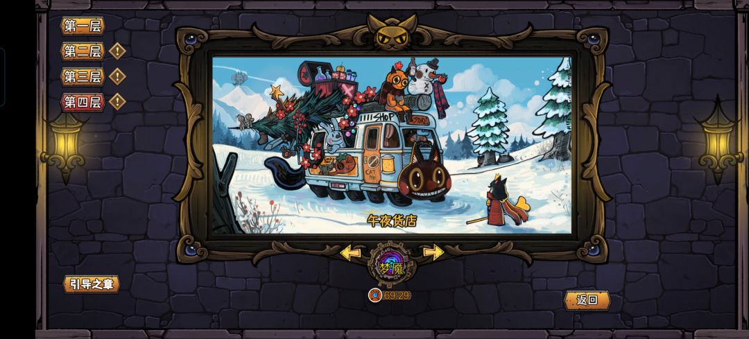 说实话,这款游戏真的不好上手,对于资源的把控和各项数值的局内养成绝对能劝退大部分的玩家,尤其是三图,很多时候都是剩一点血皮在“苟活”,运气或决策稍微差了一点都得交个复活币,我爆肝两天,把目前象征着最高难度的三图四层都拿下了,角色用的是猫法师,这是我个人感觉最强的角色