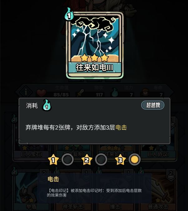 种族专属卡牌:“往来如电”,乍一看不错,挺适合雷法的啊,但真用起来感觉就没那么合适了。首先“往来如电”想要添加电击,弃牌堆至少得有2张牌。传统雷法牌组一般7张牌,1张牌始终在弃牌堆,这么玩的话“往来如电”就失去了作用。那么什么牌组能契合这张专属卡牌了?要想弃牌堆至少有2张牌,那么我们的卡组至少得有8张非移除非宝石类的牌,减去 “往来如电”,至少还得添加7张。抽牌可以通过“电虫药水”或“小雷虫”解决,要想“往来如电”伤害最大话就必须弃牌堆内的牌越多越好。但牌组的牌多了怎么解决回蓝问题了?这么看如果打爆发的话“往来如电”明显不合适,伤害远远不如“电解冰”。那么只能想怎么打持续输出了。我们的组排思路是卡组牌越多越好,要能抽卡、回蓝、不卡牌,目前我的想法如下: