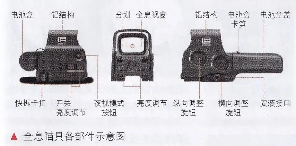 相比反射瞄准镜的凹透镜,全息瞄准镜的镜片是平面的所有没有视差这一缺点,更加精准。用激光作为光源亮度高直视天空瞄准点依然清晰,其缺点是结构复杂且成本更高,用的激光作为光源续航只有几百小时,相比反射式瞄准镜要短很多。