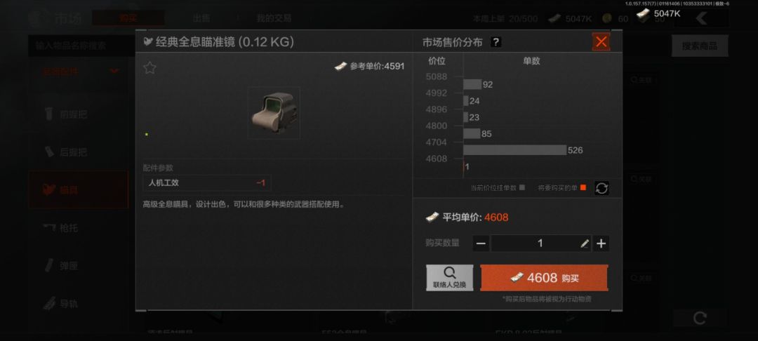 在暗区中并不是越贵的瞄具就越好哦,安装瞄具会降低人机工效,从而影响开镜速度、换弹速度以及开镜的体力消耗,所以在瞄具的选择上,需要先锋们对喜好、战局做出相应的取舍。另外加装前握把可显著提升人机工效,枪托、护木、枪栓等其他配件也会对人机工效有影响,先锋可根据实际情况,灵活调整。