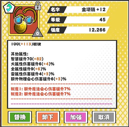 附魔选择:额外魔法会心伤害,魔法会心伤害,全属性%,智慧%,魔法攻击%,体力%。