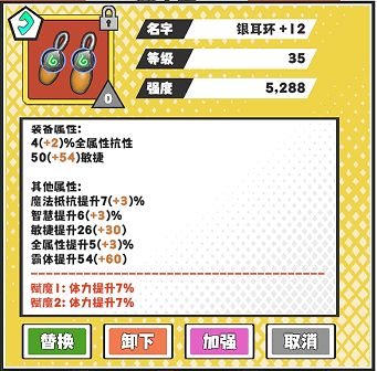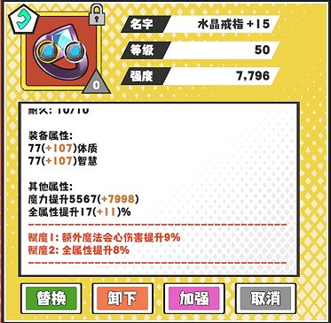 副属性:魔法攻击提升%,命中提升%,两个没强化时加起来10%左右就差不多了。
