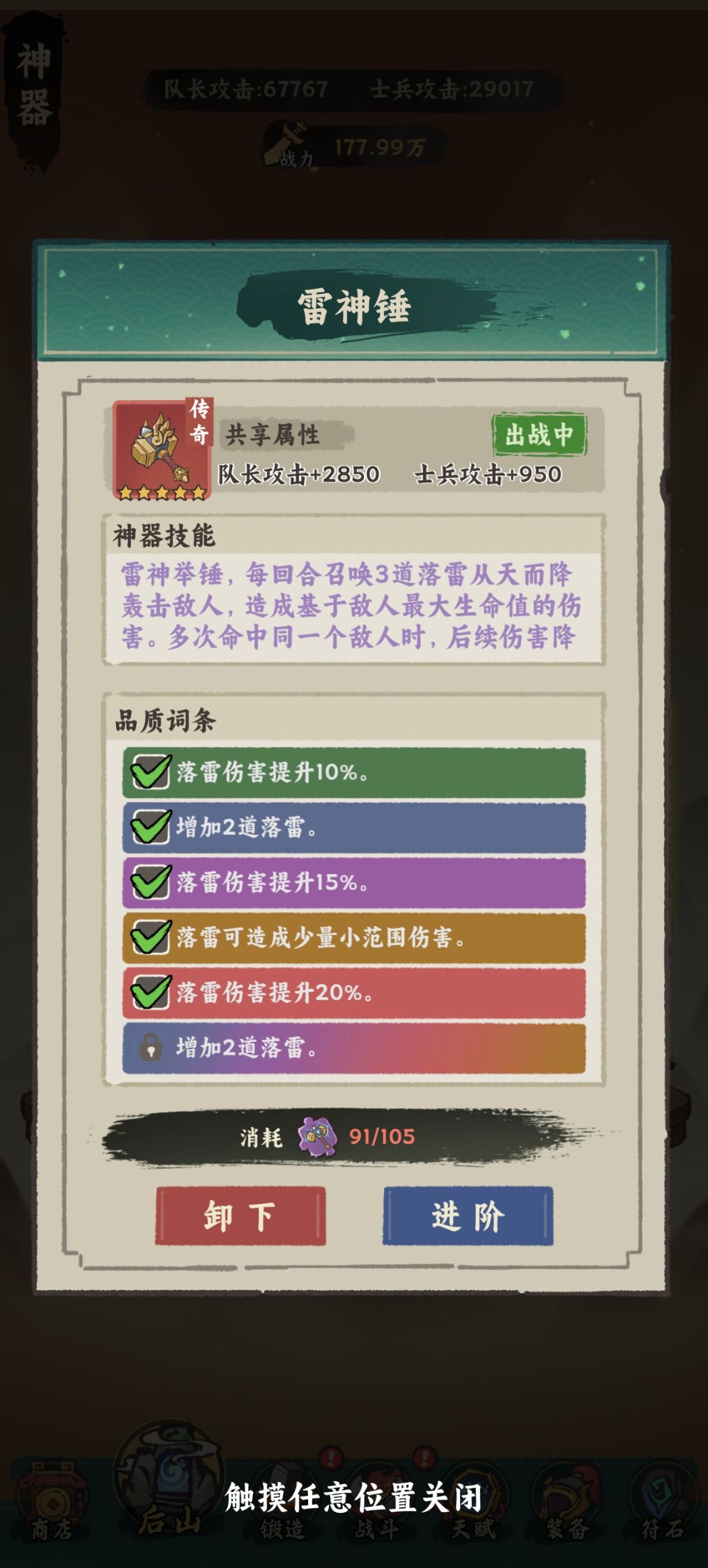 总的来讲,神器高贵的百分比伤害和开局就是完全体的特性让它在主线关卡中至关重要,可以说一多半的伤害都是神器打的,做一件好的神器才能细水长流,比起仙品重要的多。
