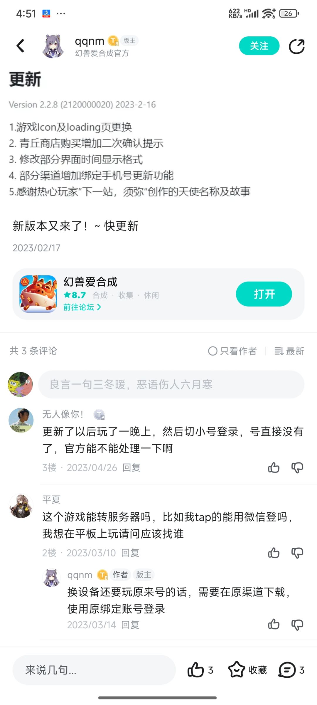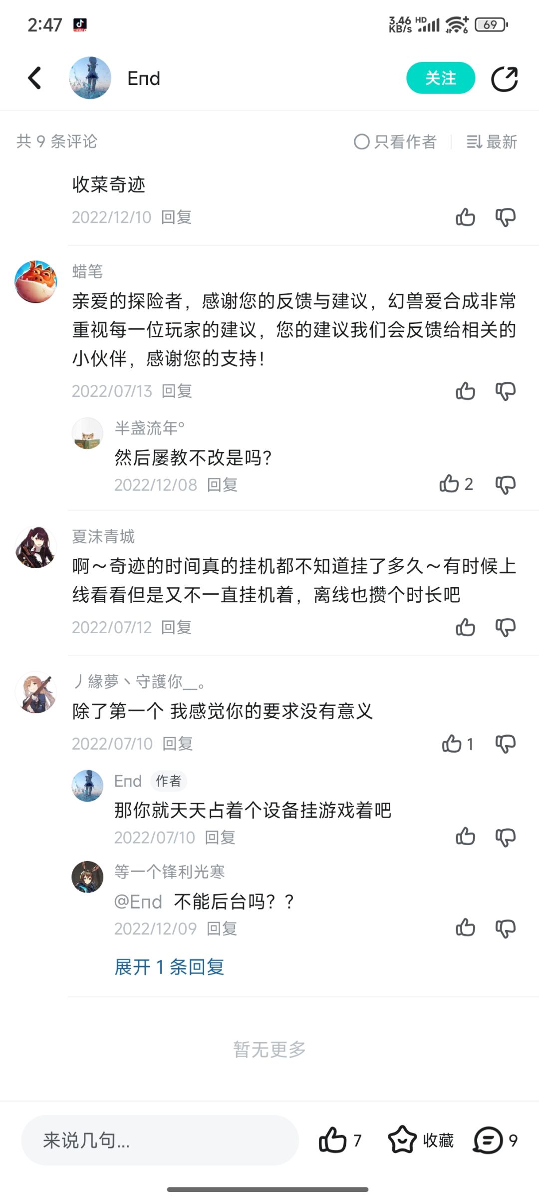 所有官方发的公告我从现在的一直翻到21年,更新内容很少,所有更新除了换装饰修bug优化操作,其他的全是新增氪金项目或者渠道,对于玩家的帖子,我看到从22年之后发布的收到过官方回应的玩家反馈有很多,在这之前的应该也有不过我懒得找了,很多建议我个人认为是合理的并且官方也回应过收到反馈,那么我想问一下,这么多年了,氪金渠道多了那么多,为什么我一点也没看到反馈的内容发生改变呢?