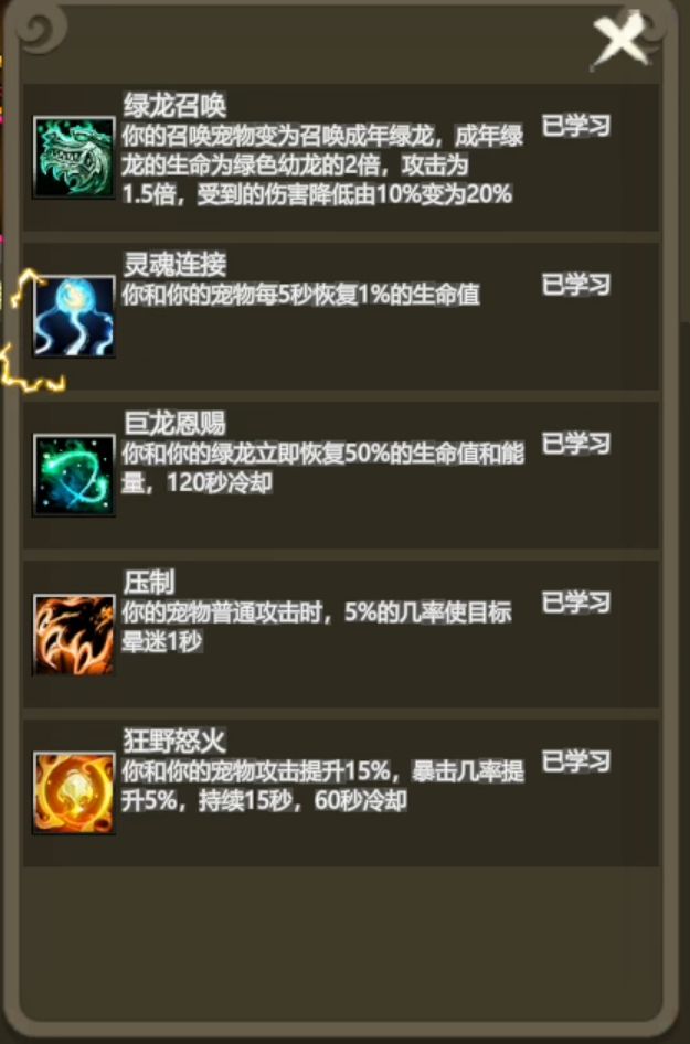 驯龙者1-4转技能