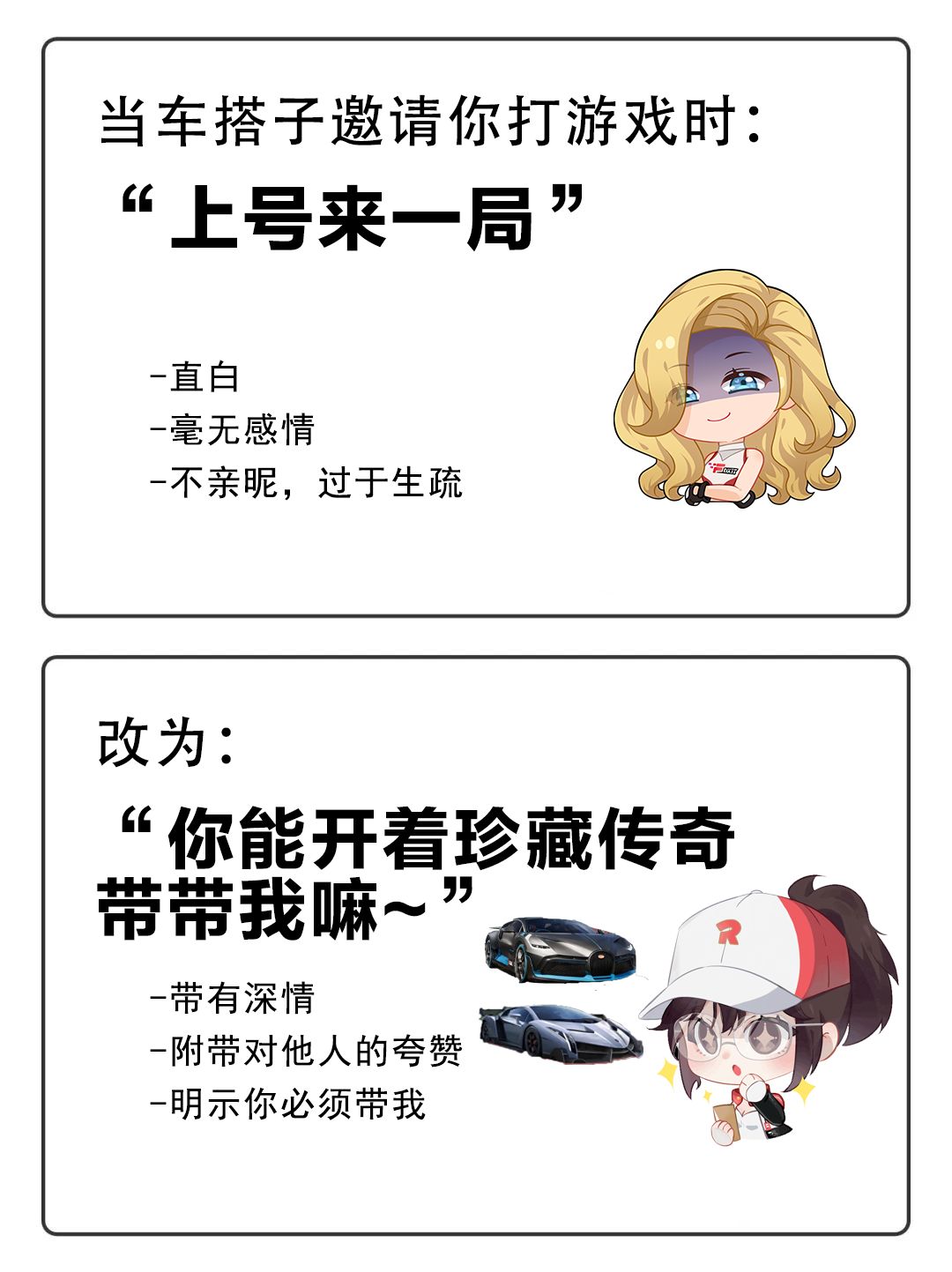 如果你相信小可的话,那就让小可带领各位车手一起看看,如何能够更加全面的玩转这两台珍藏传奇车辆!👇