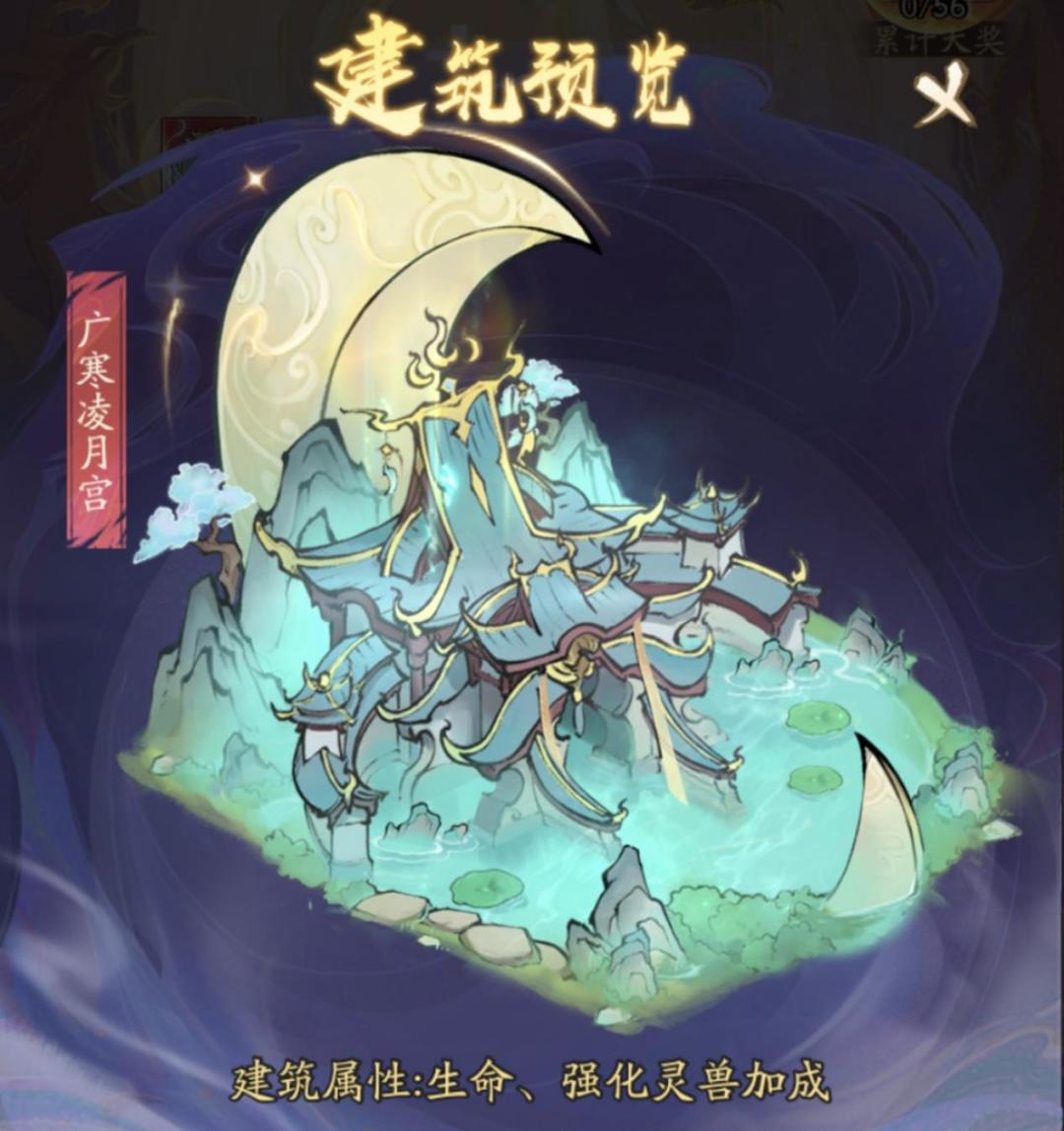 神话建筑「广寒凌月宫」返场,集齐50个碎片即可激活,激活后可获得生命以及强化灵兽加成!