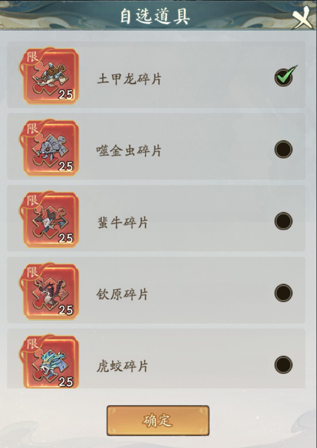 洪荒荟萃,再铸仙途!道友可在商行内选择自己喜欢的洪荒灵兽作为本期奖励,集齐100个灵兽碎片即可获得~