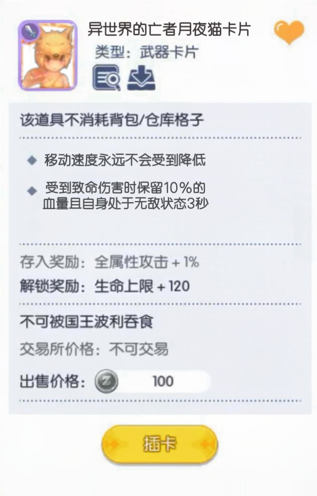 打虚空的时候还是发现用了月夜猫卡移动速度还是会被降低特别不爽,因此有了这张卡的想法,再而pvp里面被各种猫啊蛇啊狗啊什么的秒的不要不要的,希望能有个无敌技能防身哪怕只是三秒
