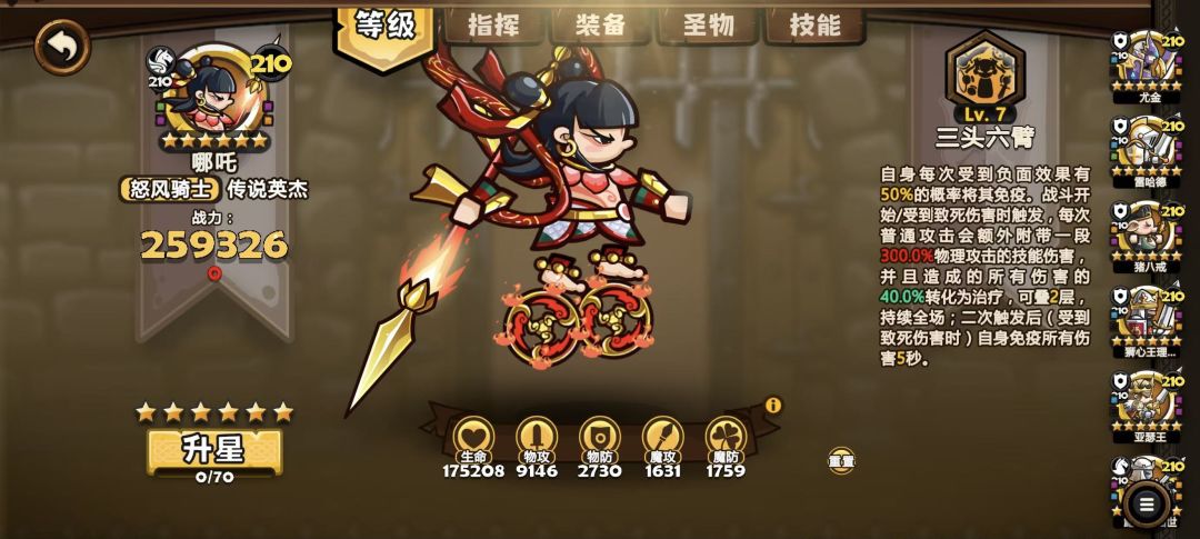 - 优先升级哪吒的等级至战力瓶颈确保基础属性达标 技能三头六臂 乾坤宝珠”联动技能 其他被动。