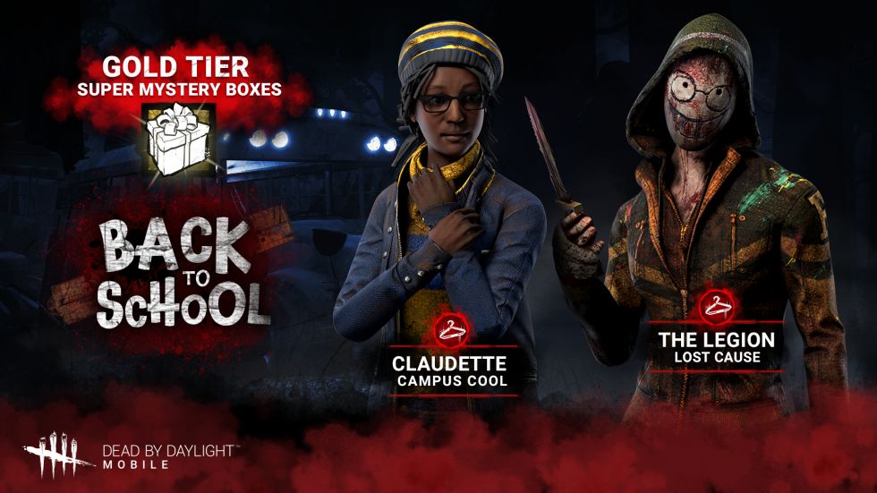回到学校的衣服 上课时,学生们穿着打扮要杀人。 由Claudette和The Legion组成的Back to School 服装系列 在限定时间内 进入The Bloodmarket ,仅在Gold Tier Super Mystery Boxs中可用。