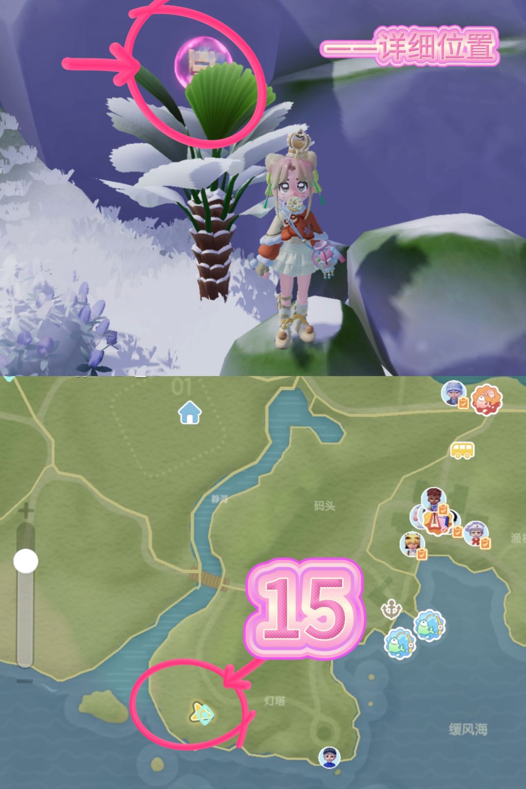 第一张图是15个粉红泡泡的合集,大家可以先在地图上标好大致位置,过去后再看2-9图的详细位置图噢~