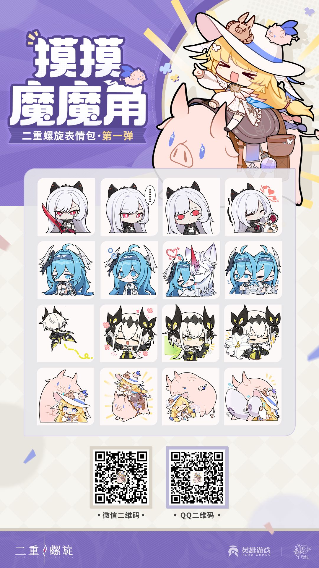 ✦欢迎各位狩月人点击图片扫码,或前往「微信表情包商城」「QQ表情包商城」搜索「二重螺旋摸魔角1」下载使用!