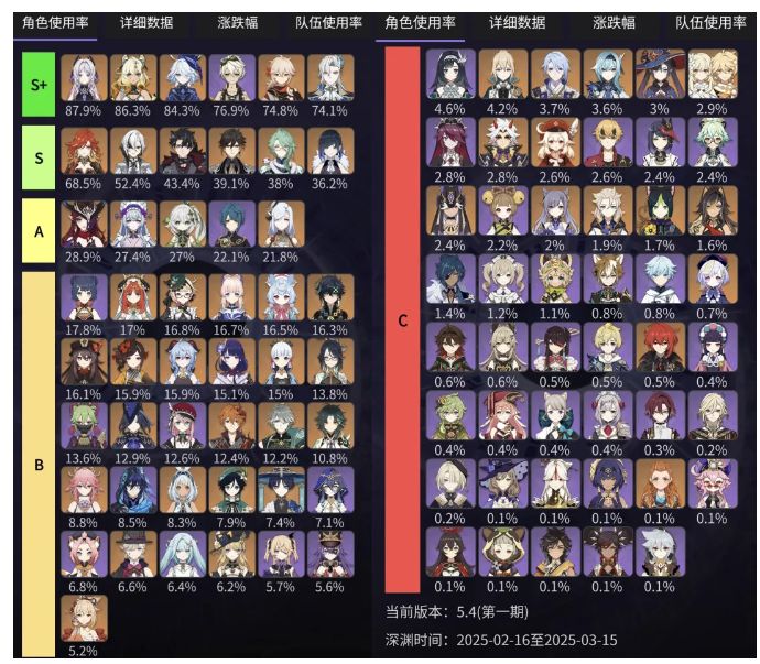 原神5.4卡池的梦见月瑞希、希格雯已经登场了一段时间,想抽的旅行者们倒是要加把紧了,随着纳塔新角色越来越多,很多老角色也慢慢淡出了玩家们的视野,而说起最新一期5.4角色深渊使用率排行也终于是出炉了,一起来看看吧!