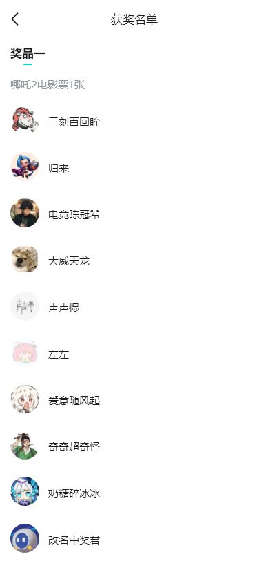 抽哪吒2电影票活动奖励名单如下: