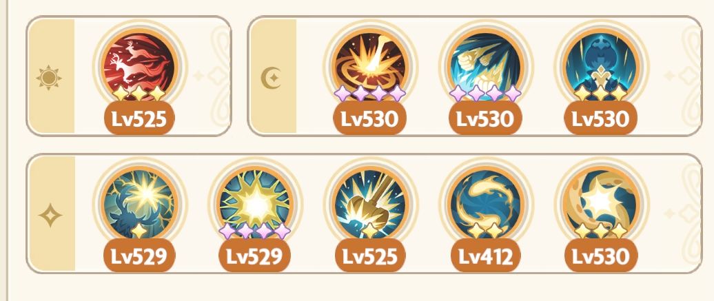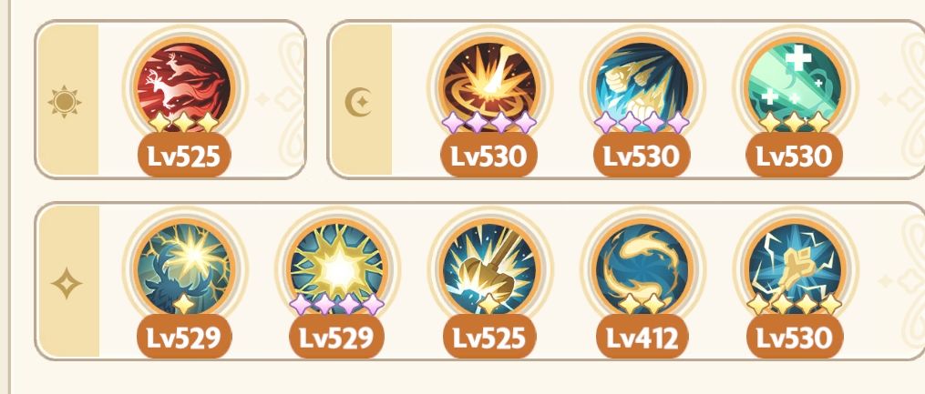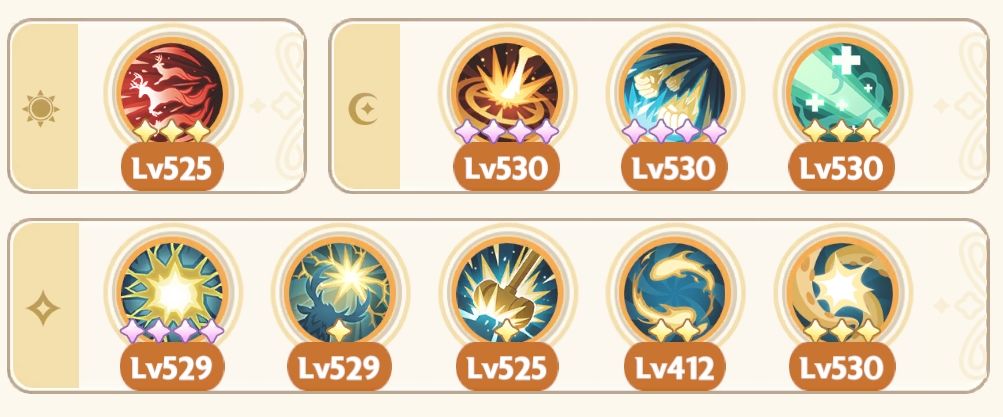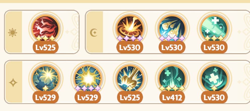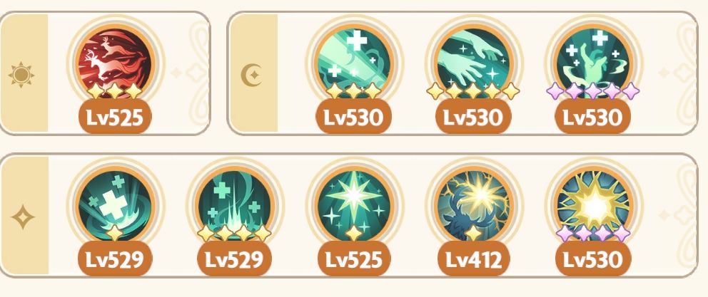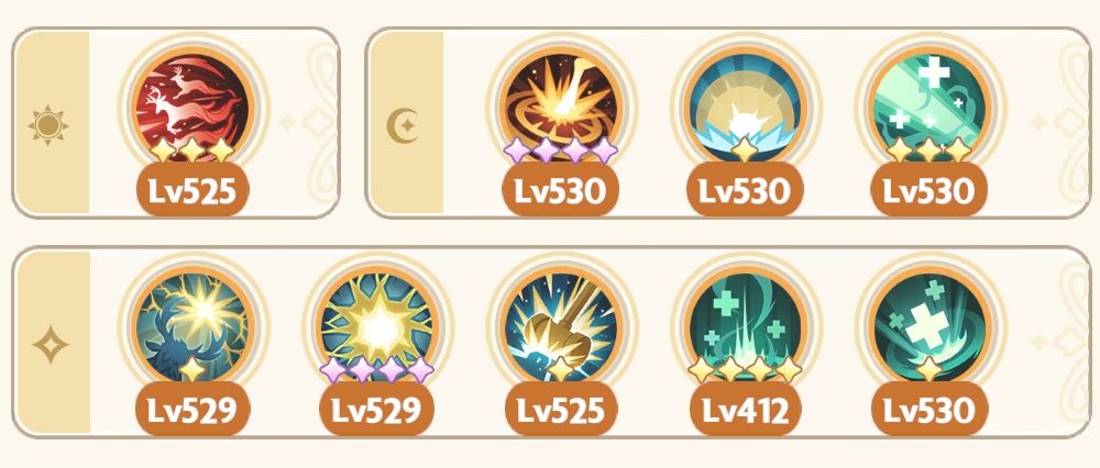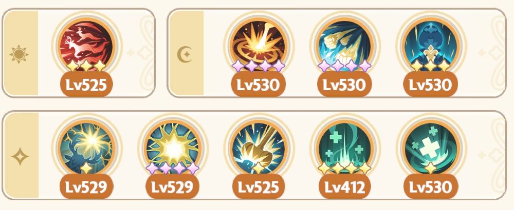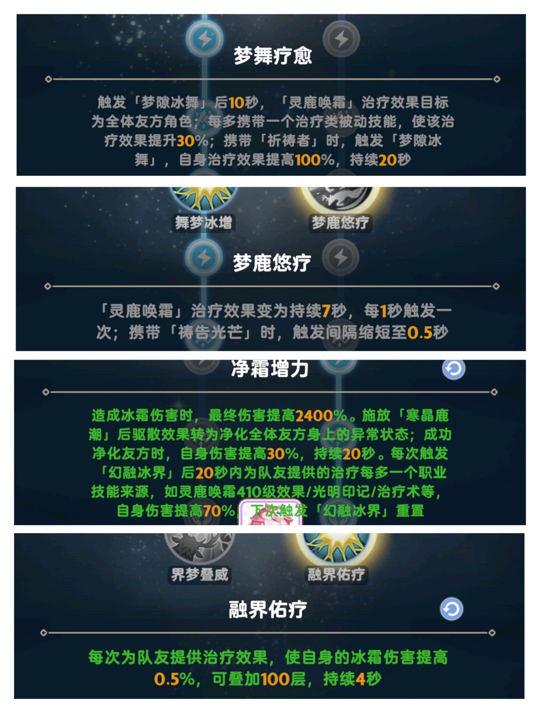 祷告光芒、祈祷者、光明印记、梦隙冰舞、幻融冰界(幻融冰界可换其他高星专属或通用技能,吃星级效果,执行官除外)