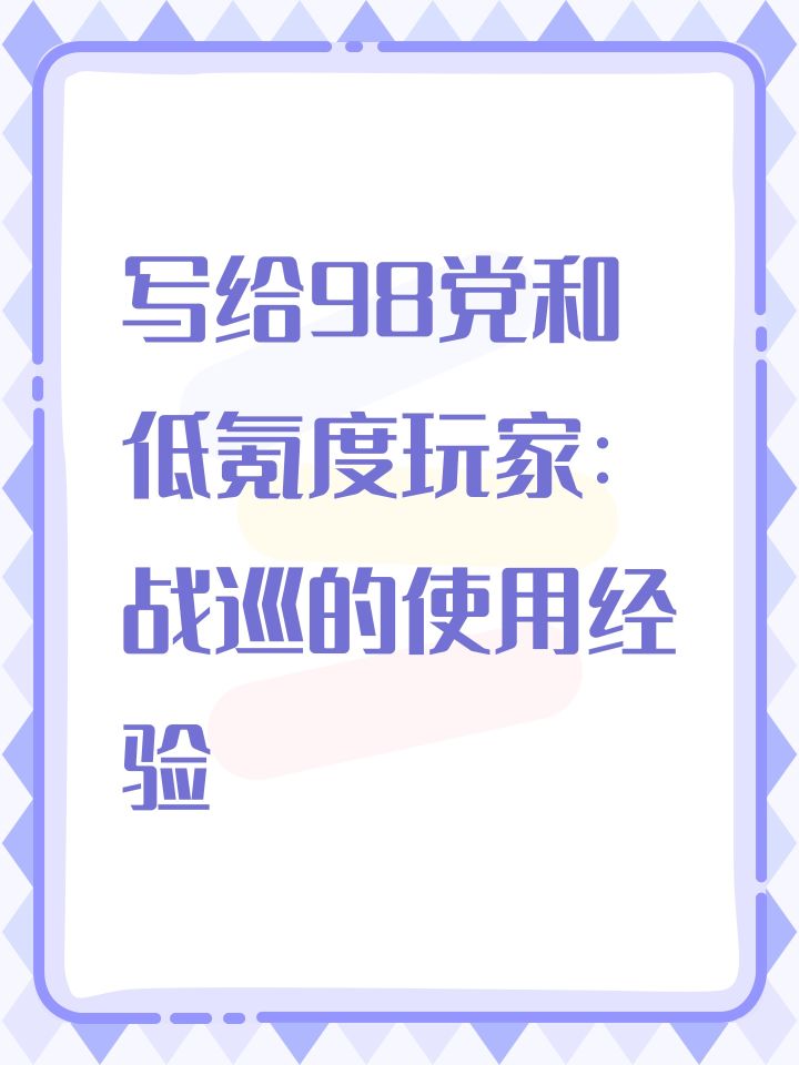 写给98党和低氪度玩家:战巡的使用体验