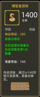 4、5回项链缚誓者颈饰(后期不推荐,一般为前期开荒阶段选择,后期使用会损失大量伤害)
