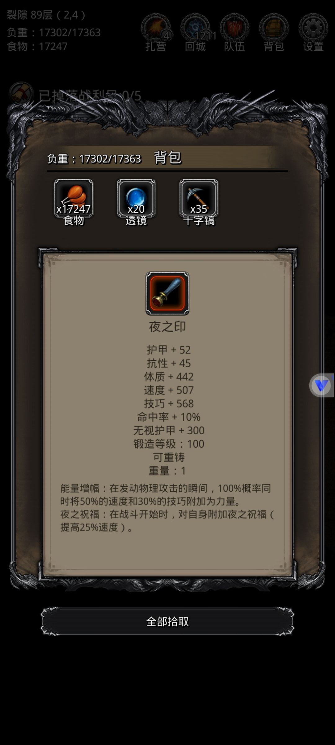 这样夜魇光靠装备就有60%闪避,战利品再补15%闪避左右就有刷脸资格了