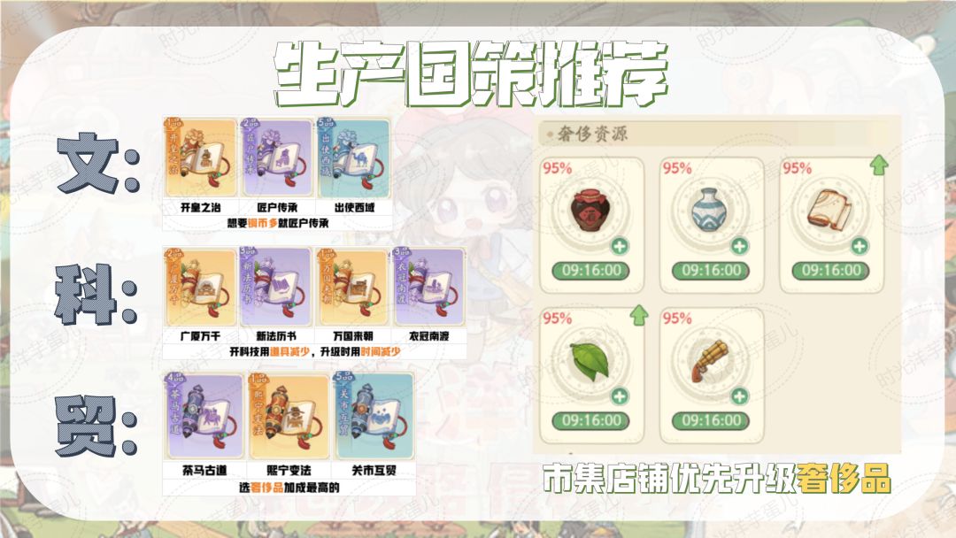 【时光攻略】生产国策&建筑材料一览