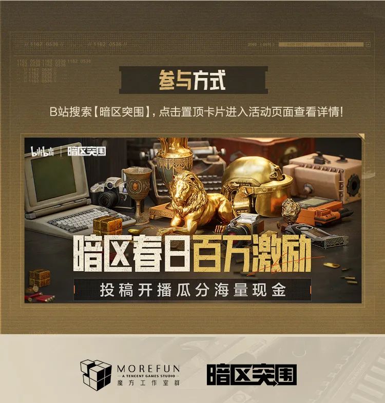 B站搜索【暗区突围】,点击置顶卡片进入活动页面查看详情!