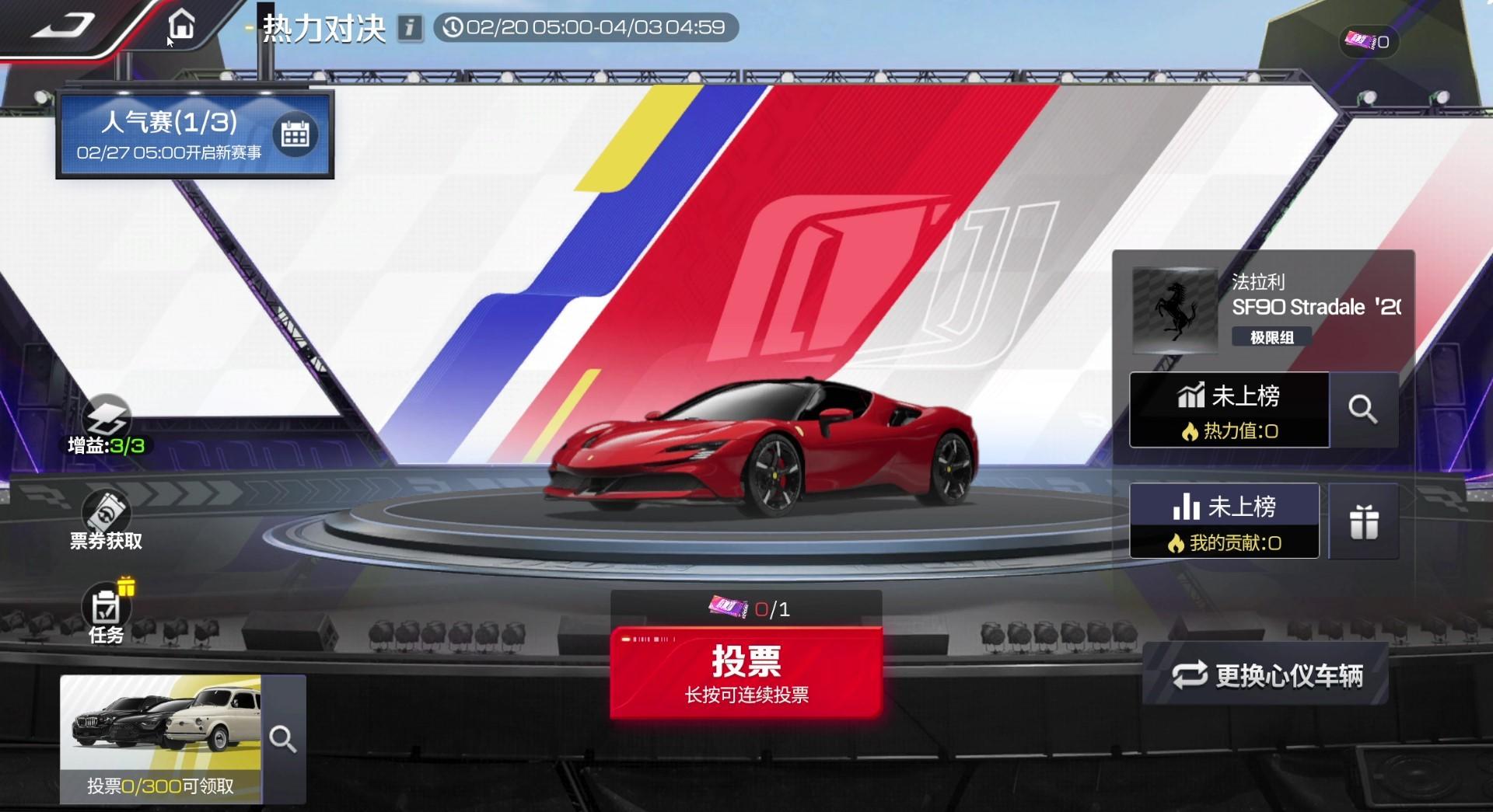 赛季开始前三周是人气赛,这就像是海选阶段,每周系统会提供一批车辆供各位车手选择作为 “心仪车辆”。你可以根据自己的喜好、车辆的性能或者是颜值,选出那个最能打动你的 “idol车”。