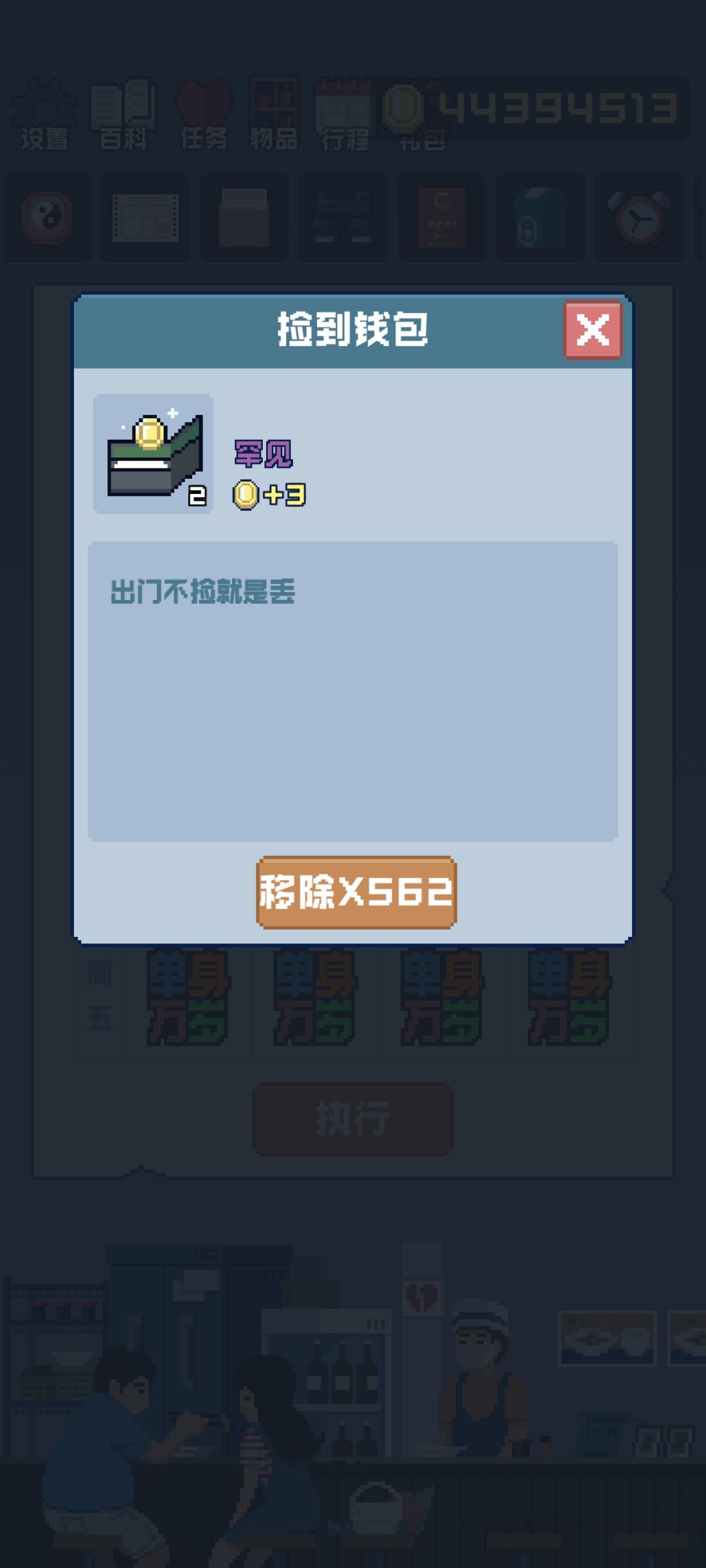 前期看到街溜子记得拿,用来刷捡到钱包,前期可以多出捡到钱包来过渡