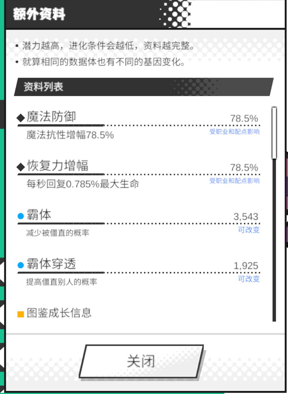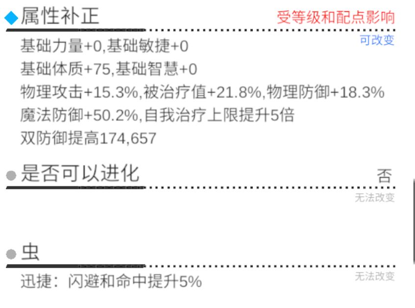 比如部分优点和缺点,补正和图鉴成长,进化等级参考等等。