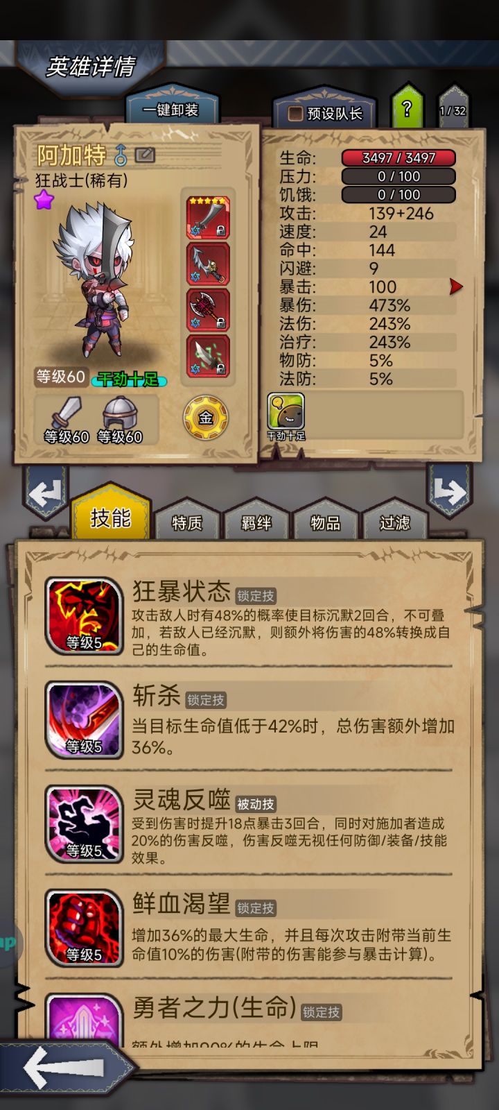 ★火剑:减防光环24%,普攻带烈焰22%,血怒等效于自己加普攻,王牌
