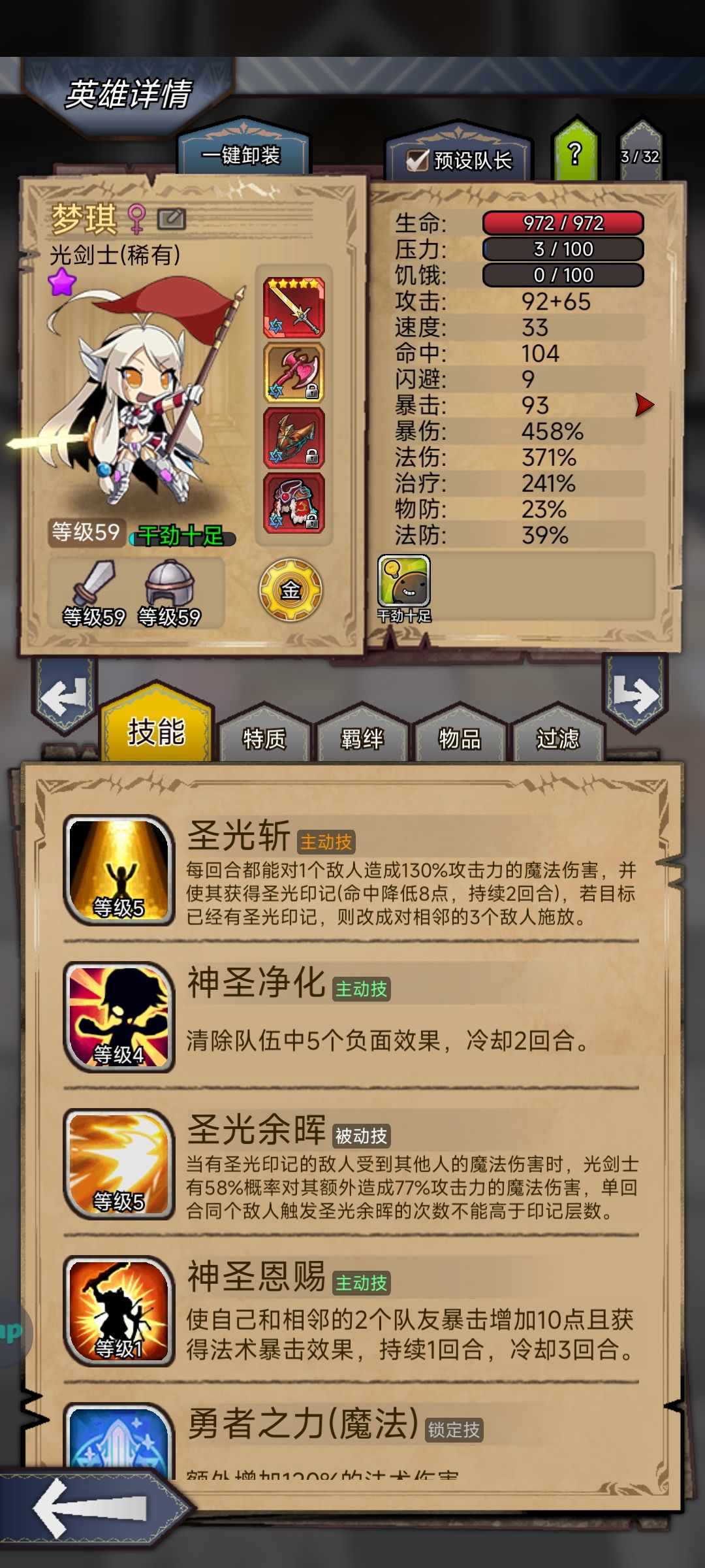 ★圣骑95:加双抗(有空窗期),无敌盾,沉默 ☞变体:嘲讽抗暴圣骑~魔蛛,蚁后,王牌