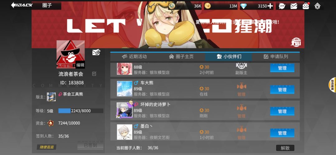 圈子介绍:活跃温馨的五级小圈子收人啦,圈子有很多百万战力大佬带队,多半大佬百万战力以上。有自家小群十分活跃,圈子目前护航17层2波。本版主职业工具人,十年陪跑,专业后勤,只要你不弃坑,那么我就保证给你一个活跃的公会,一个温馨的小圈子!