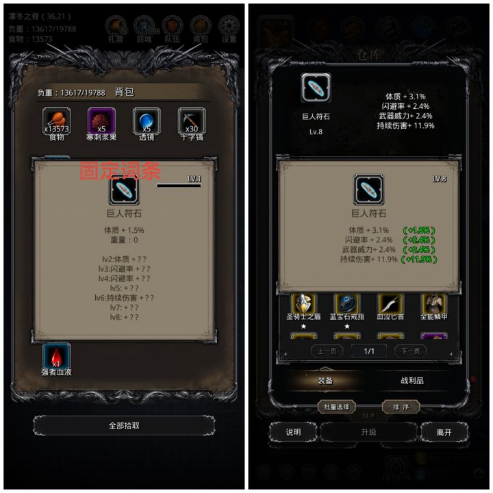 图43失心矛巨人掉落的“巨人符石”战利品,见图1固定的词条,目标是11以上的持续伤害词条。