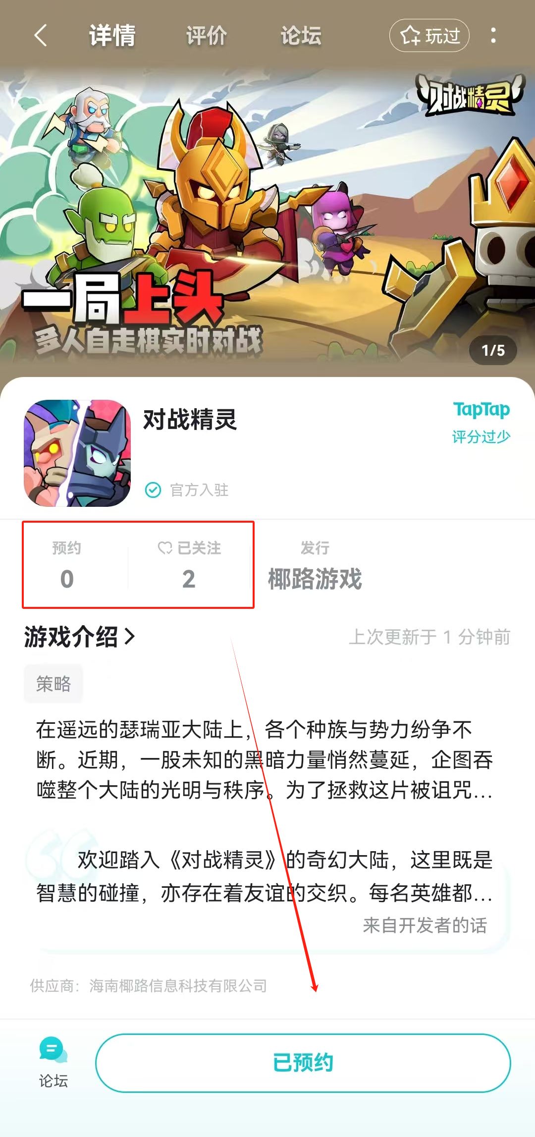 告诉大家一个好消息!咱们的自走棋策略类手游《对战精灵》已经在TapTap上开启预约啦!O(∩_∩)O