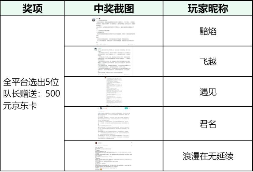各位队长们好呀!因为收集到了各位队长很多宝贵建议,因此我们把中奖人数提升至5个名额,恭喜以下幸运队长中奖哦~请您在3月5日23:59之前联系阿爆小助手【QQ:3566774082 】进行兑奖核奖,超过期限将视为自动放弃,无法兑换奖励。