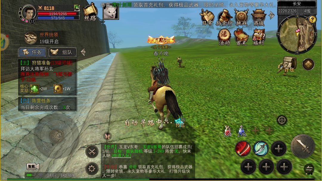 3.加入战盟,任务必做当角色达到12级后,可以加入战盟。战盟是游戏中重要的社交和资源获取平台。每天可以完成三次战盟任务,这些任务不仅能够提供可观的经验和金币,还能获得战盟贡献值,用于兑换稀有道具。特别提醒玩家,战盟任务的星级越高,奖励越丰厚。因此,在接受任务时,务必刷新星级,以获取最佳收益。4.野外挂机,组队增益当任务完成,角色进入“卡等级”阶段时,可以选择在野外挂机升级。挂机时,建议尽量组队打怪。同屏组队不仅能够获得额外的经验加成,还能避免抢怪的情况发生,提升升级效率。