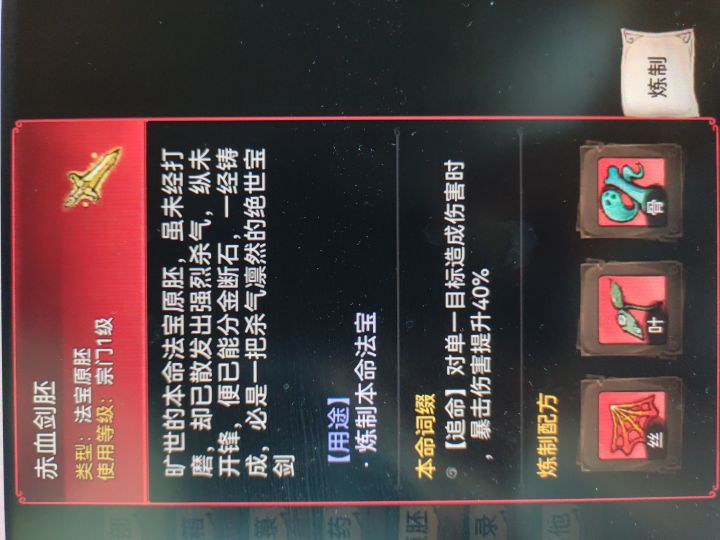我给策划一个思路,增加类似天命赦令一样获取难度的道具,可以洗练红色本命原胚的法宝配方。