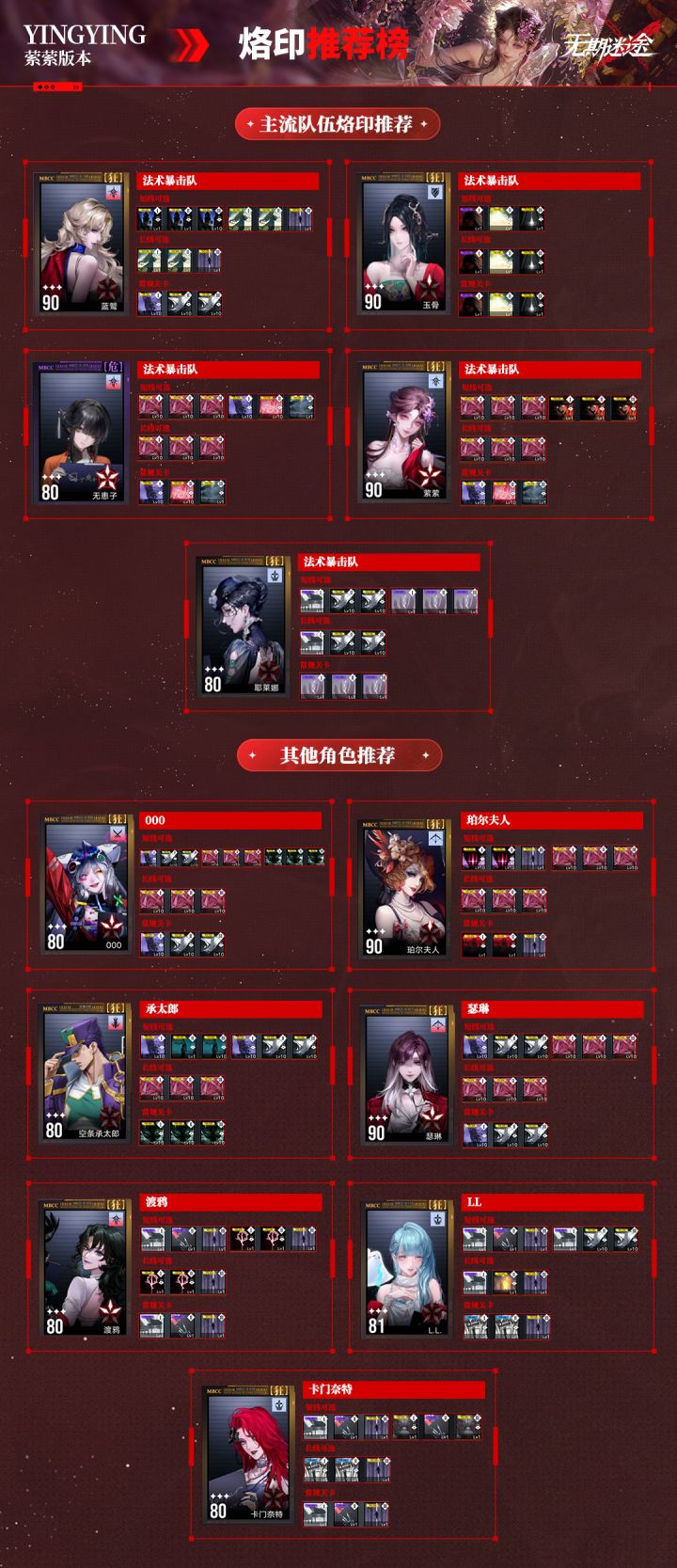 一期目前萦萦版本的烙印推荐,有不同思路的局长欢迎一起讨论呀~