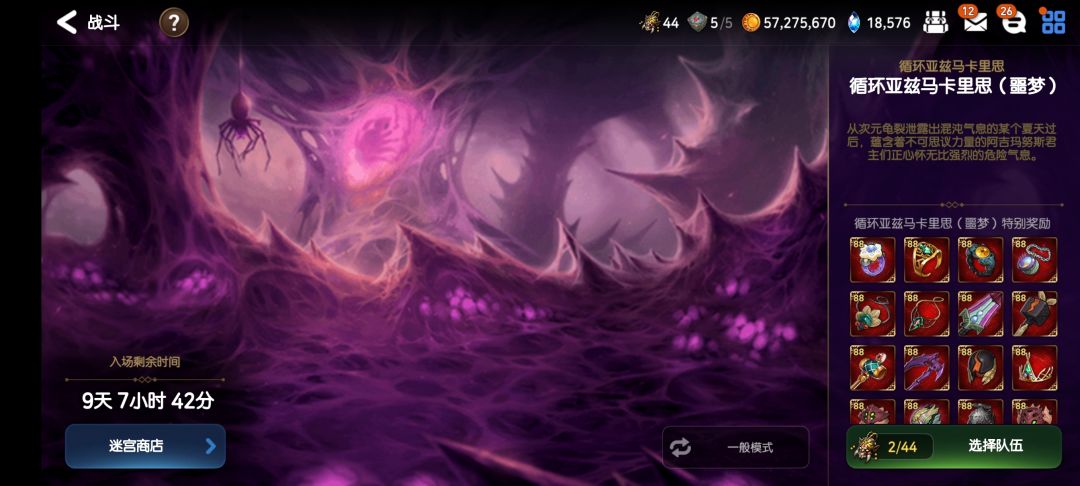 每月刷新一次,噩梦难打一些奖励也好一些,要五队角色不能重复。可以换42胚子的88装备也能掉落好的装备